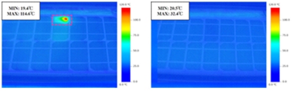 下図はサーモ画像で、左側が従来のシステム、右側が本システムの画像です。